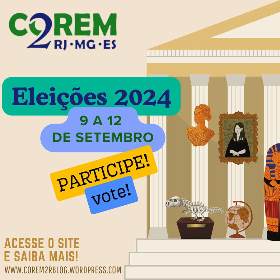 No âmbito das normas estabelecidas na Portaria COREM 2R 001/2024, que regulamenta o processo e o calendário eleitoral no COREM 2R em 2024, a Comissão Eleitoral convoca os(as) museólogos(as) adimplentes e com registro ativo para votação, que ocorrerá entre os dias 09/09/2024 e 12/09/2024. O voto é obrigatório, salvo para os(as) profissionais maiores de 70 anos. Conforme determina a Resolução COFEM n.º 73/2022 em seus Art. 14 e 15, as eleições ocorrerão exclusivamente por meio eletrônico, ficando vedada a votação por quaisquer outros meios, assim como o voto por procuração ou qualquer outro meio de representação.